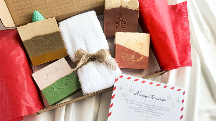 Our Christmas collection is here to fill your bath time with holiday cheer. Celebrate the magic of the season with our Christmas collection — a cozy assortment of handmade soaps inspired by the scents, colors, and joy of the holidays. Each bar is lovingly crafted to bring a little Christmas cheer to your daily routine, making them perfect for gifting or treating yourself this winter.